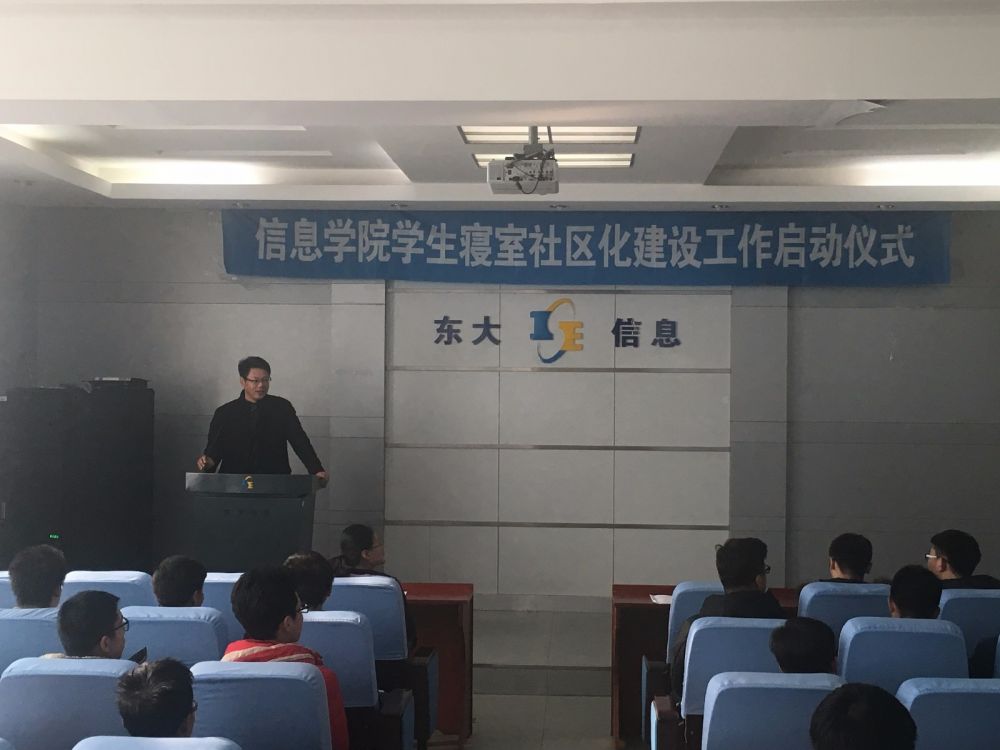 启动仪式于12月2日在信息学馆301举行,会议由学办2016级本科生辅导员宋晓艳老师主持,学生工作办公室主任李世鹏老师介绍了《信息科学与工程学院学生寝室社区化建设方案(试行)》;学院学生寝室社区化建设服务中心主任、2014级本科生张子荷代表事务中心全体成员发言,介绍了中心的工作职能、表达了为各社区做好服务工作的决心;五舍第八社区主任、2015级学生支元祺同学代表社区主任谈了工作设想;学院党委副书记、副院长吕兴君老师再次明确了本项工作的重要意义、并对各社区负责人提出工作要求。
