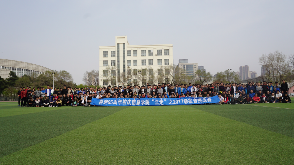 为迎接我校建校95周年,提升2017级本科生爱校荣校观念,4月18日下午14时,学院在五五运动场举办喜迎95周年校庆信息学院“三走”之宿舍挑战,2017级480余名学生参加了此次活动。