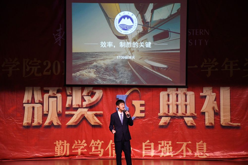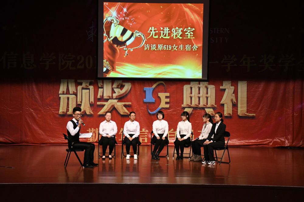 颁奖仪式过后,由获奖代表进行事迹分享。测控1702班白羽、自动化1709班杨沐天、刘登峰、张学文分别以目标选择、高效学习、自立自强和出国交流为主题,分享个人经验。典礼最后,对平均绩点过4的女生619宿舍进行访谈,让同学了解到团结向上、互敬互爱的宿舍氛围是怎样炼成的。