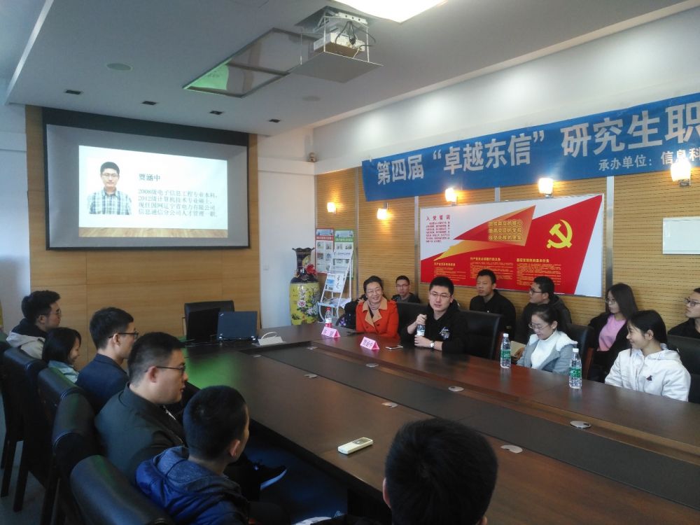 为活跃校园文化氛围,提高学生综合素质,11月1日上午,学院第四届“卓越东信”研究生职业发展论坛系列讲座在信息学馆224室举行,活动特邀国网辽宁省电力有限公司信息通信分公司HR贾涵中作为活动主讲人。学院研究生辅导员齐丽、数十名研究生参加本次活动。