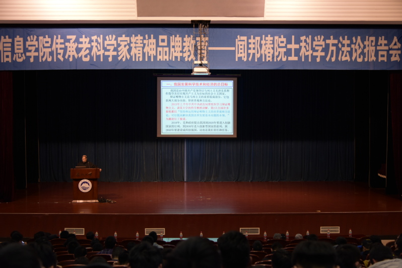 闻院士为学院师生介绍了科学方法论的要素、规则及具体运用等内容,并结合自身多年的工作经验和科研经历介绍了科学方法论的具体应用。闻院士指出,通过科学方法论的学习,可以指导人们更加高效的进行学习研究。闻院士已经是89岁的高龄,站在讲台上进行了近两个小时的讲座,中途没有任何休息,讲座风趣幽默、语调慷慨激昂、内容引人入胜。