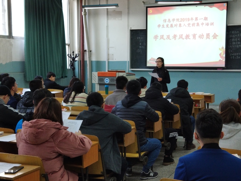 3月22日中午,学院学生党总支在何世礼教学馆110室召开了2019年第一期发展对象入党前集中培训学风及考风教育动员会。学院党委组织员刘宇出席并主持动员会,2019年上半年发展对象54人全部参加会议。