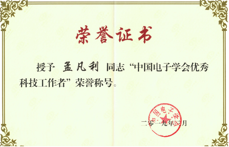 “中国电子学会优秀科技工作者”荣誉称号主要授予在电子信息领域科学研究、技术创新与开发、科技成果推广应用和实现产业化方面取得卓著成绩或者做出突出贡献的科技工作者。获评人员将在每年的中国电子信息技术年会上进行表彰,同时进入“中国电子学会人才资源库”。入库专家将获得两院院士、“全国优秀科技工作者及十佳”、“中国青年科技奖”、 “光华工程科技奖”、“创新人才推进计划”等中国电子学会人才推选举荐优先权,以及工业和信息化部、财政部、国家发展和改革委员会、科学技术部和中国科协等部门项目评审专家库的推荐。
