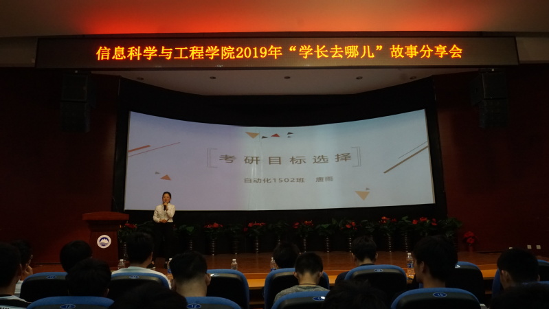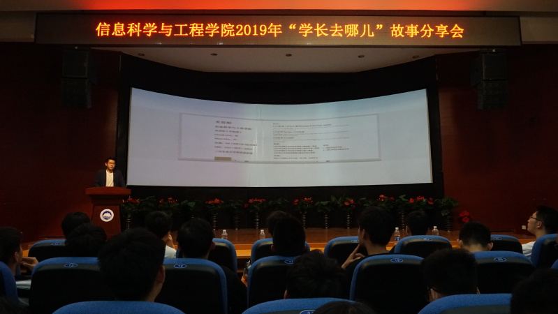 学院优秀毕业生事迹报告团成员由学院最具影响力毕业生获奖者及在保研、考研、出国留学、就业工作等方面表现优秀的2015级毕业生构成。报告团成员就本校考研、外校考研、保研、出国留学、就业工作等方面内容,从日常学习、学科竞赛、科研项目、学生工作、出国申请、实习就业等多角度为2017级学弟学妹进行了介绍。