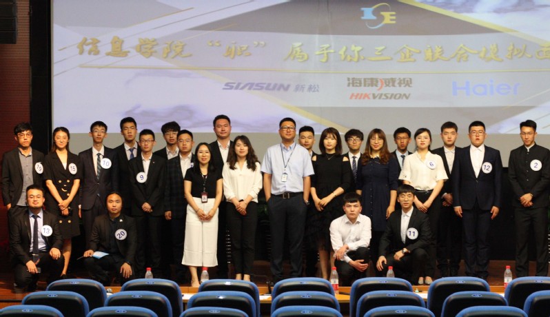 6月12日,学院首届企业联合模拟面试——“职”属于你三企面试挑战赛在科学馆201成功举行。海尔集团东北区域高级人力资源总监李君实、海尔集团东北区域人力资源经理夏良帅、新松机器人高级招聘经理胡博、新松机器人大学合作经理陈舒柳、杭州海康威视数字股份有限公司沈阳分公司人力资源负责人 孙萍、东北大学职业发展指导中心副主任顾硕,学院就业指导教师宋晓艳、沈鹤及学院300余名本科生、研究生参加了此次活动。