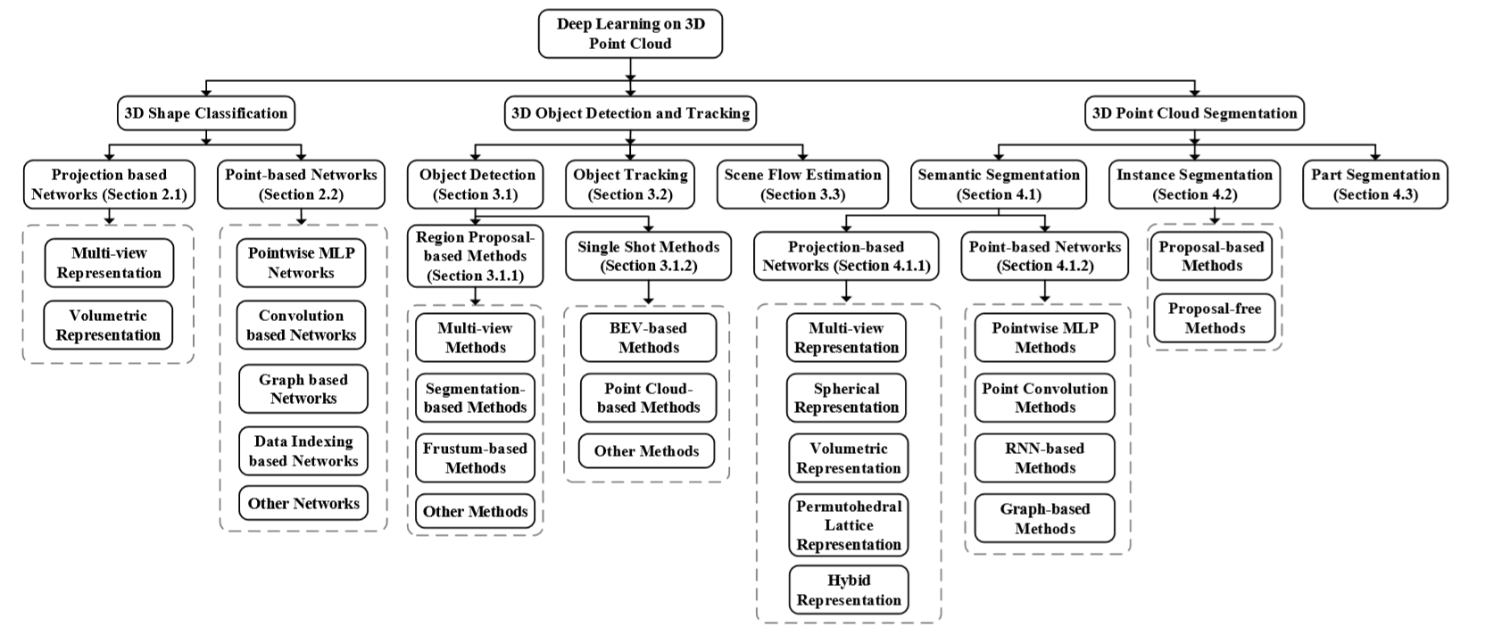 近年来,已经有很多优秀的论文应用在3D深度学习领域中。该领域主要涵盖了以下三个主要任务,包括三维形状分类,三维目标检测和跟踪以及三维点云分割。