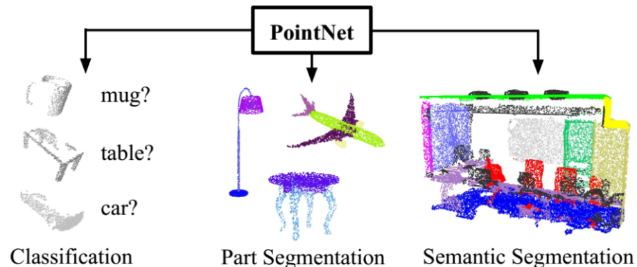 直接对点进行处理是目前最为主流的做法,代表作是斯坦福大学研究人员提出的PointNet,用来直接对点云进行处理,PointNet是第一个直接处理无序点云数据的深度神经网络。一般情况下,深度神经网络要求输入信息具有规范化的格式,比如二维的图像,时序性的语音等。而原始的三维点云数据往往是空间中的一些无序点集,假设某一个点云中包含N个三维点,每一个点用(x,y,z)三维坐标表示,即使不考虑遮挡,视角等变化,单就这些点的先后顺序排列组合,就有N!种可能。因此,我们需要设计一个函数,使得函数值与输入数据的顺序无关。实际上,在代数组合学中,这类函数被称为对称函数。PointNet中,作者使用了Max Pooling层做为主要的对称函数,这种处理虽然简单,但是实验证明效果较好。