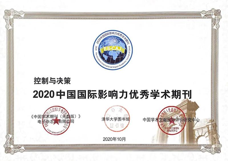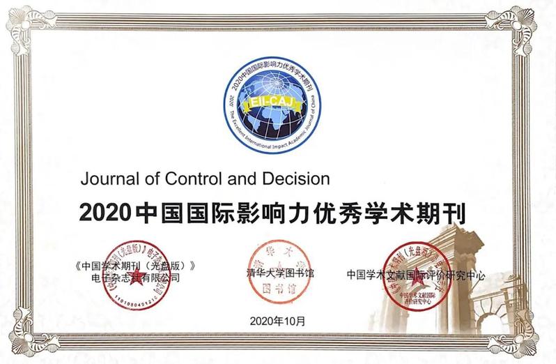 大会同时发布了《世界期刊影响力指数(WJCI)报告(2020科技版)中国期刊名单》,《控制与决策》和《Journal of Control and Decision(JCD)》两刊在“控制科学与技术”学科中分别位列中国期刊的第一和第二位,国际期刊的17/69和21/69,WJCI分区分别为Q1区和Q2区。《Journal of Control and Decision(JCD)》在“工程通用技术”学科中位列中国期刊的第一位,国际期刊的4/40,WJCI分区Q1区。