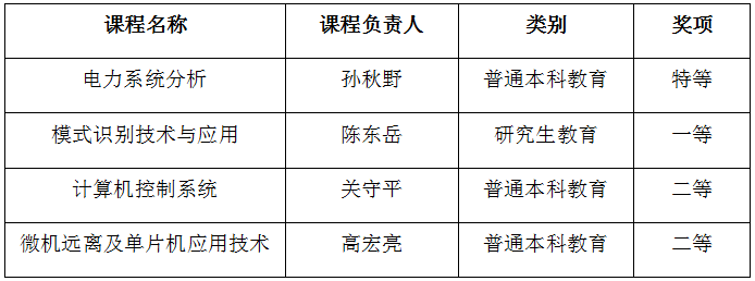 近日,经学院推荐、学校评审,东北大学课程思政优秀课程评选结果公布。由学院推荐的四门课程分获特等奖一项、一等奖一项、二等奖两项。同时根据教育部办公厅《关于开展课程思政示范项目建设工作的通知》要求,学校推荐孙秋野教授负责的《电力系统分析》参评教育部课程思政“示范课程、教学名师和教学团队”。