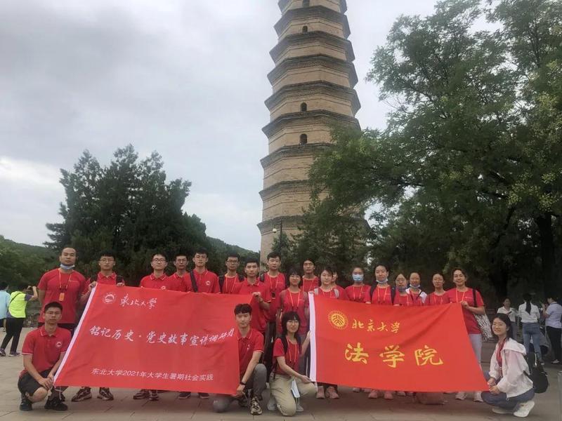 2021年暑假,信息学院赴陕西社会实践团前往延安市宝塔山革命圣地等地,重温中国共产党百年奋斗历程,感悟中国共产党建党百年以来对中国做出的巨大奉献,并进行党史故事宣讲。