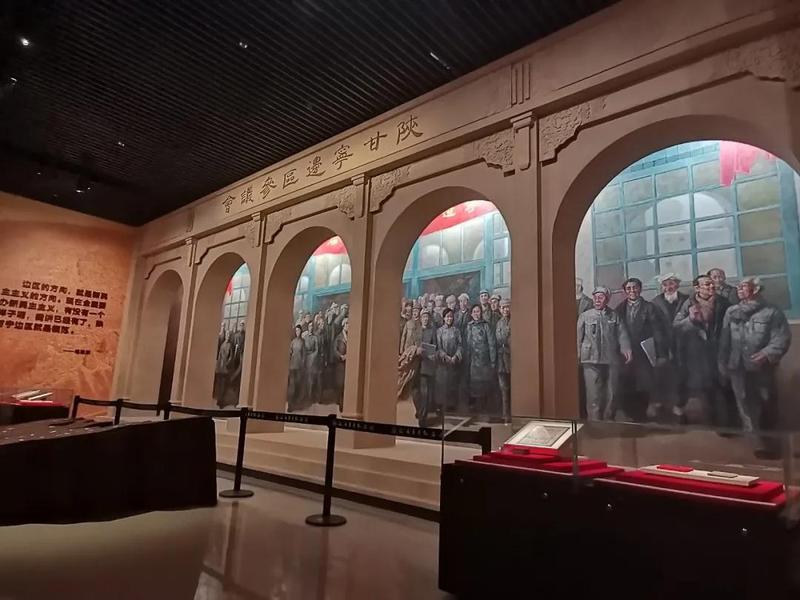 实践团到达延安革命纪念馆参观学习。在延安革命纪念馆广场前,一座巨大的毛主席雕像矗立在那里。人潮涌动,却无不向着主席瞩目,献上环圈与敬意。这里的大山依然巍峨矗立在那里,一片厚土埋藏着炽热的革命精神。