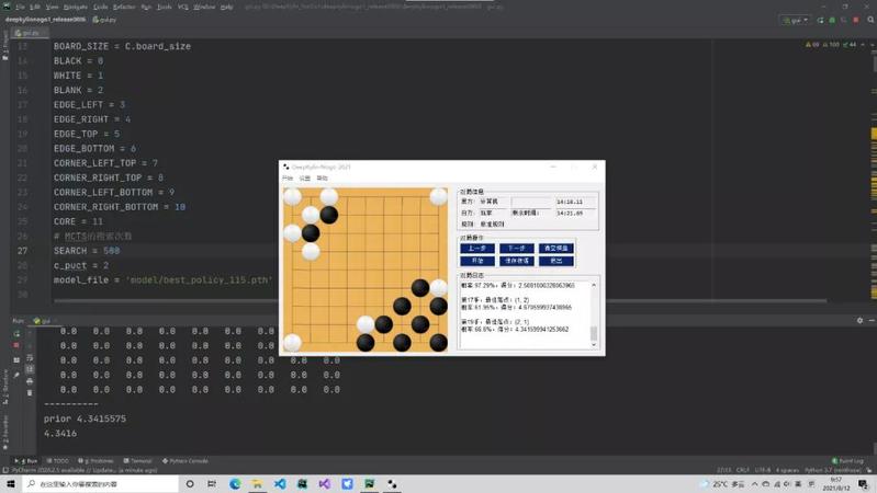 作品简介:作品使用alpha-zero强化学习算法,在pytorch框架上利用自对弈的数据训练神经网络,并用最新的神经网络实时指导自对弈过程,同时利用棋盘翻转镜像等手段进行数据增强,在Linux系统下利用多进程并行计算方法增强效率,使得程序可以不借助人类知识,通过不断探索、学习达到较高的水准。