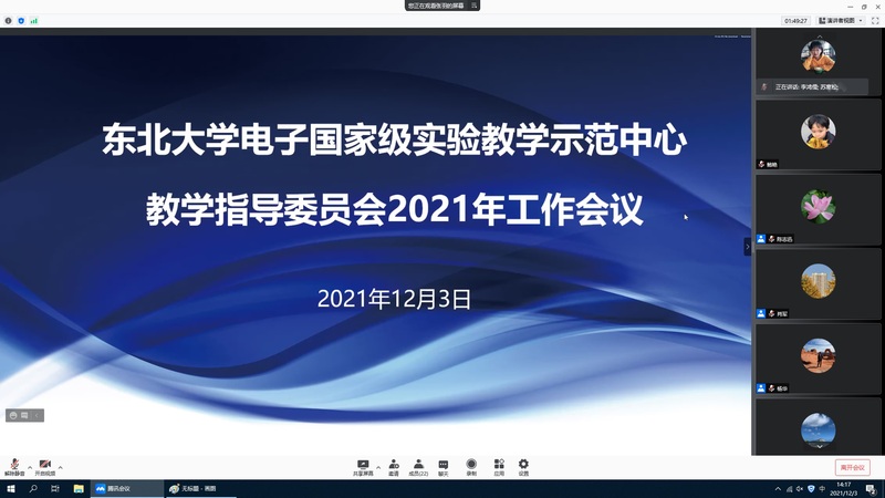 12月3日,东北大学电子国家级实验教学示范中心教学指导委员会2021年年会在线上顺利召开。电子实验教学中心教学指导委员会全体委员、北部地区高校电工电子实验教学中心联席会副秘书长肖军教授及信息学院实验中心相关人员参加此次会议。会议由电工电子实验教学中心主任李鸿儒教授主持。