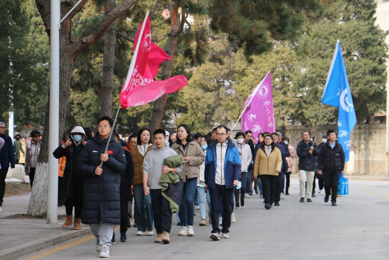南湖校区教职工纪念“一二·九”运动健步行活动开幕式在图书馆南广场举行。信息学院副院长张威主持开幕式,信息学院党委主要负责人致开幕词。开幕式设各部门、各学院风采展示环节。健步行活动从图书馆南广场出发,经北门校庆石、刘长春体育馆、大成教学馆、“一二九”广场、冶金摇篮等地,全程约2公里。中途设置“一二九广场”“校庆石”“冶金摇篮”三个打卡地,寓意学校教师“立报国之志”“育强国之才”“圆百年之梦”的使命情怀,相关工作人员在三处打卡地为活动参与教师进行文化宣传并发放健步行活动券等纪念品。
