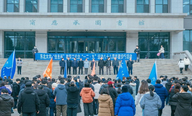 12月8日,东北大学在南湖校区和浑南校区同步举行“信息杯”教职工纪念“一二·九”运动八十八周年健步行活动。健步行活动由校工会主办,信息学院承办,学校22家分工会共计700余名教职工参与本次活动。