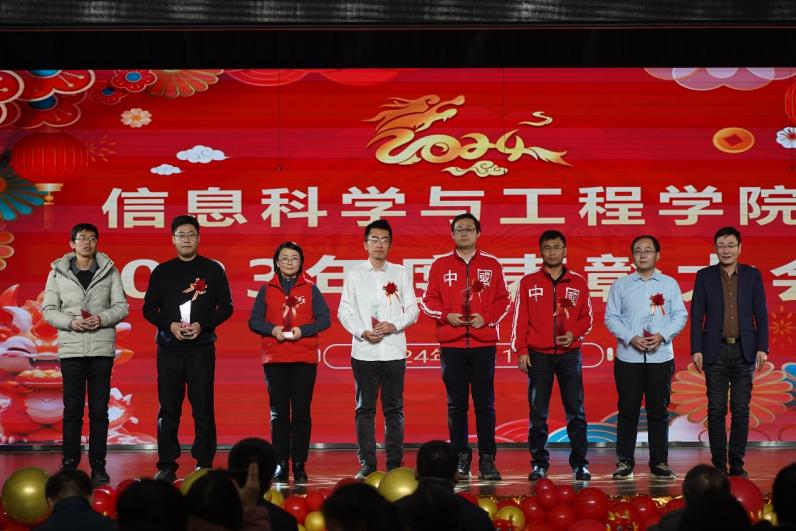 学院党委主要负责人宣读《信息科学与工程学院关于2023年度年终表彰的决定》,希望全院教职员工坚持立德树人的核心地位不动摇,进一步落实人才培养中心地位,献身教育事业,为提高教学科研质量及管理服务水平、推动新一轮“一流学科”建设做出更大贡献。与会嘉宾为获奖的个人和集体颁发奖杯。