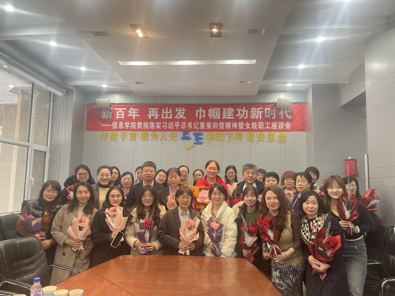 3月8日,在第114个国际劳动妇女节到来之际,“新百年 再出发 巾帼建功新时代”——信息学院贯彻落实习近平总书记重要回信精神曁女教职工座谈会在信息学馆228室召开。信息学院领导班子成员及30余名女教职工代表参加座谈会。座谈会由学院工会主席肖军主持。