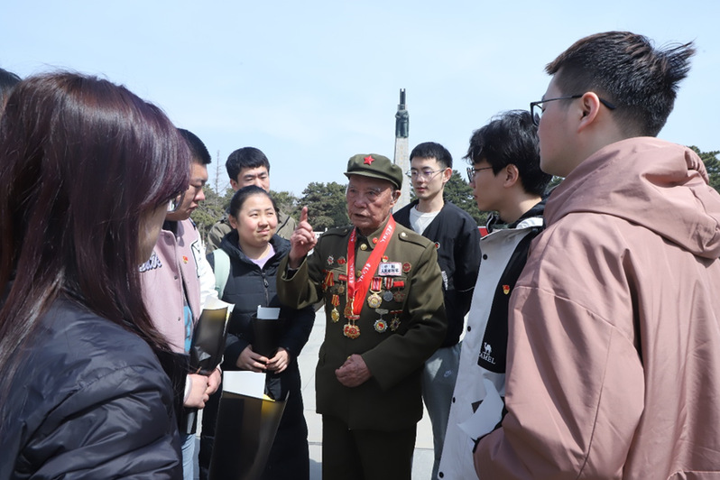 在纪念碑前,党员们有幸倾听92岁高龄的抗美援朝英雄老兵李维波讲述抗美援朝战场上的英雄故事,老英雄语重心长对在场的党员们说:“希望你们努力学习,为伟大的党、伟大的祖国贡献你们的力量!”