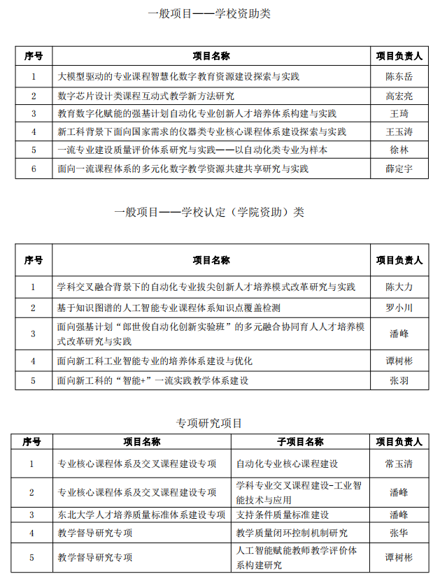 近日,为持续深化教育教学综合改革,全面提高人才培养质量和本科教育教学水平,构建具有东大特色的一流本科教育教学体系,学校采用“自上而下、自下而上”双向模式,启动了2024年度东北大学本科教育教学改革研究立项工作。