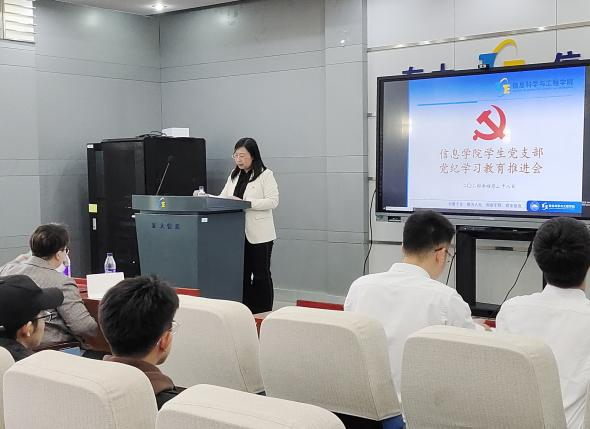 4月28日,信息学院学生党总支在信息学馆301室召开党纪学习教育推进会暨全国高校“百个研究生样板党支部”创建分享会,学院党委副书记、副院长(兼)吕志娟以及全体学生党支部书记、支部委员参加会议。会议由党委组织员刘宇主持。