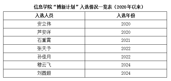 6月14日,中国博士后网站正式发布了《关于对2024年度博士后创新人才支持计划拟获选人员进行公示的通知》,信息学院青年教师穆云飞、刘圆超成功入选。