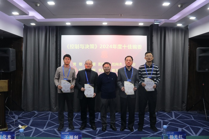 会上宣布了《控制与决策》2024年度十佳编委名单。东北大学黄敏、曲阜师范大学孙宗耀、中南大学阳春华、华北电力大学刘向杰、浙江工业大学张文安、浙江大学柴利、东北大学刘士新、青岛科技大学巩敦卫、天津大学唐万生、天津大学左志强等10位编委获评“十佳编委”荣誉称号。王福利为获奖编委颁发荣誉证书。