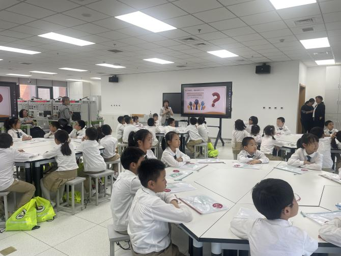 实验中心副主任张羽为学生们开设“神奇的电路世界”小课堂,指导学生进行纸电路交通灯实验,让学生利用学到的电路知识,把看不到的电流变成手中交替闪烁的灯光;实验中心自动化及检测技术实验室主任王彦婷为学生讲授“用电安全我知道”安全知识讲座,以互动和抢答的形式,为学生普及了生活中的用电安全知识;实验中心党支部书记鲍艳和望湖路小学马琳老师共同为学生颁发了研学证书。