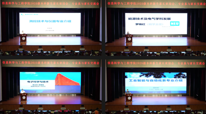学院各专业系主要负责人与新生家长开展交流会。工业智能与自动化系主任常玉清、系副主任谭树彬,智能检测与控制系主任王玉涛,电气工程系党总支书记刘金海、系副主任罗艳红,电子科学与技术系主任张继良、优秀班导师刘纪红面向家长和学生关心的升学、就业、发展等问题介绍本科各专业情况,同时与家长进行深入答疑互动。